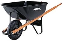 With 6 cubic feet of hauling capacity this True Temper wheelbarrow is ideal for homeowners landscapers and light construction work. The 6 cubic foot seamless steel tray is plenty tough and will provide years of service. Around the house or on the job this is the right wheelbarrow for the job. 6 cubic foot capacity. Seamless steel tray. 16 inch tubed tire. 60 inch seal coated hardwood handles. Length: 58.75 Width: 25.5 Height: 27